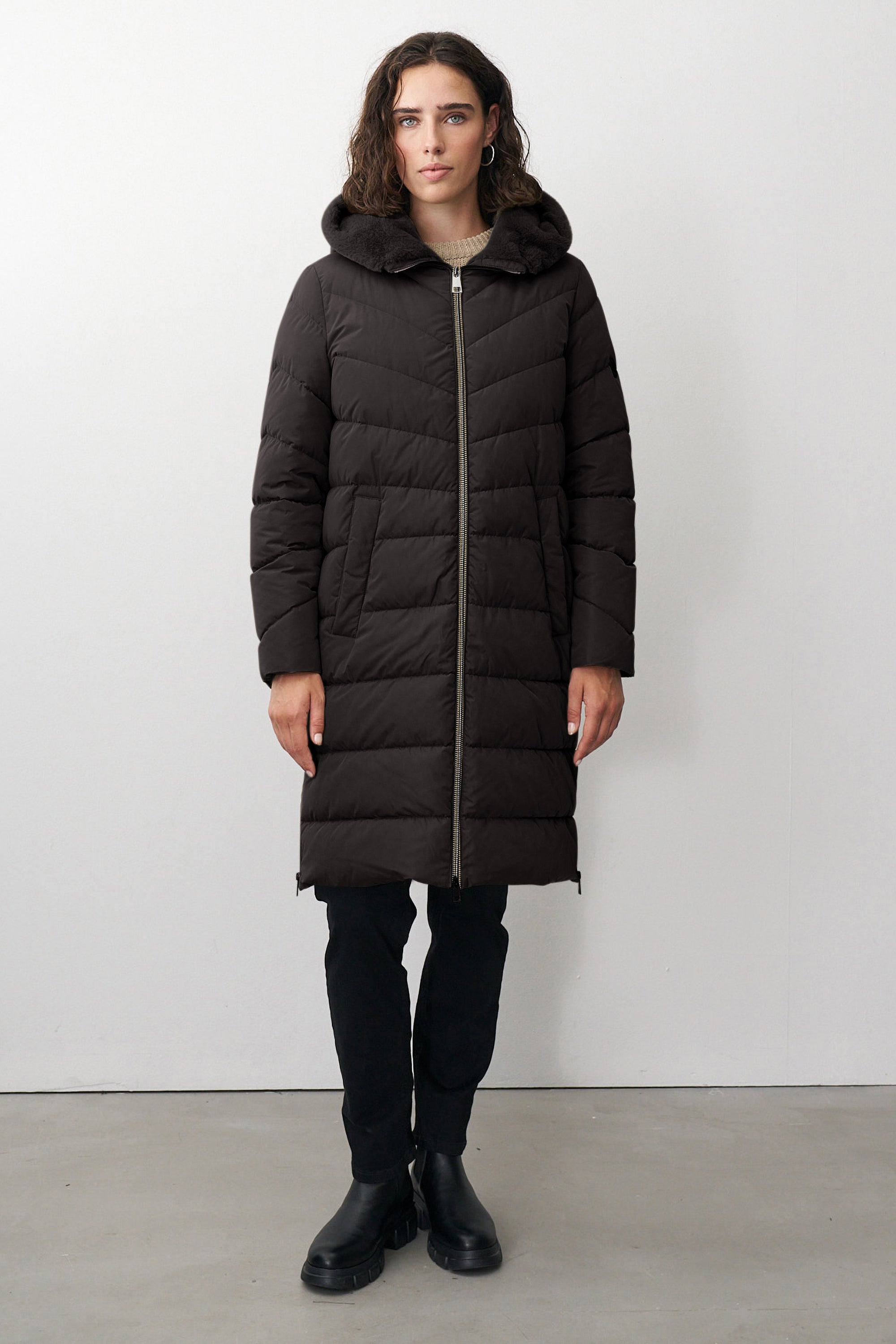 Warmer Steppmantel Damen mit Kapuze